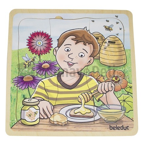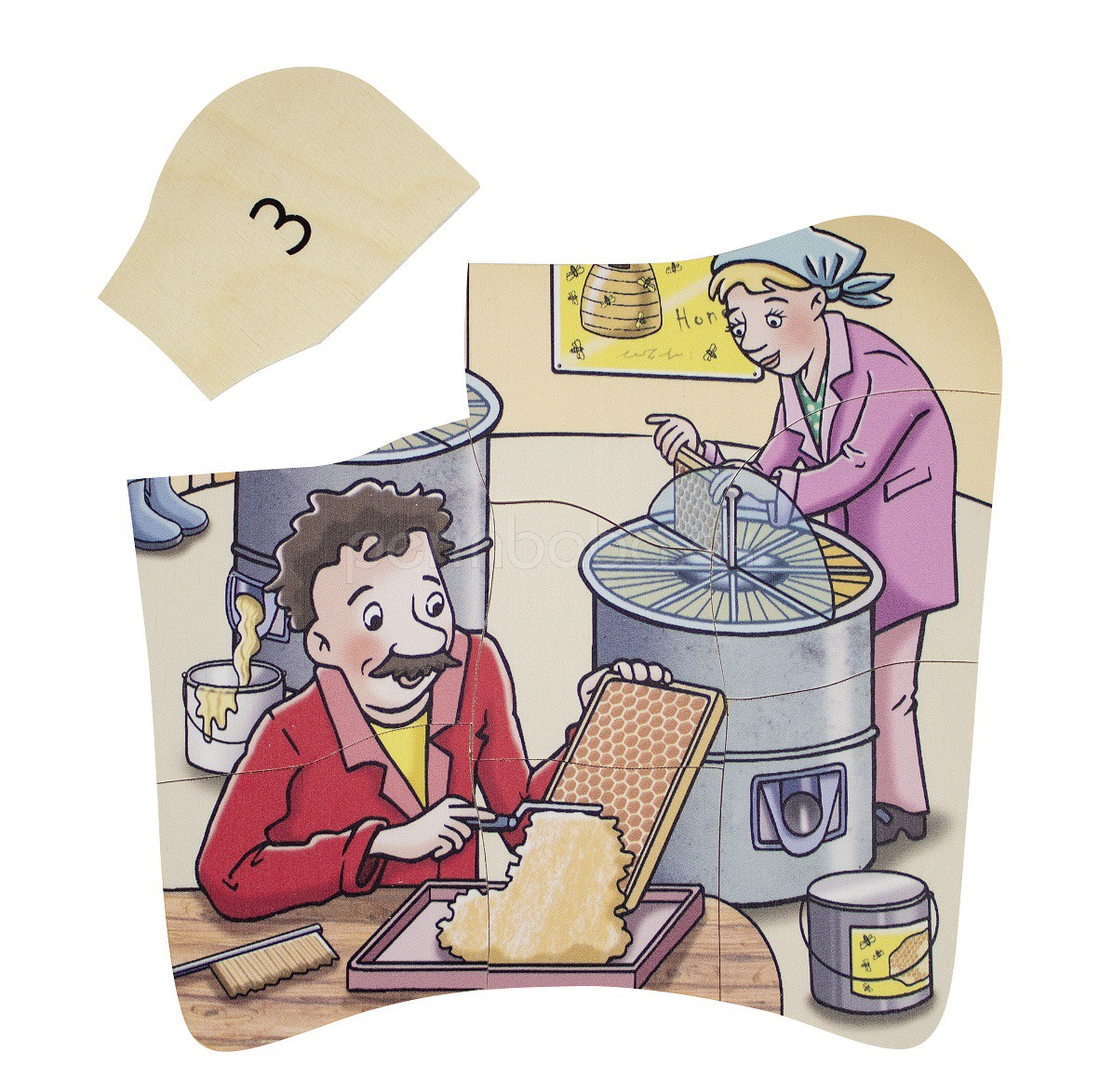 Pomocou tohto obrázkového puzzle sa deti dozvedia, ako vzniká med, ako včielky zvierajú nektár a ako včelár stáča med z plástov. Obsahuje až 5 rozličných obrázkov.