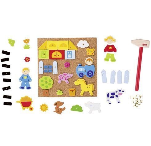 Hra, pri ktorej si deti trénujú predstavivosť, kreativitu a motoriku. Jednotlivé farebné dieliky sa pritlčú a vytvárajú rôzne obrázky s tématikou farmy.