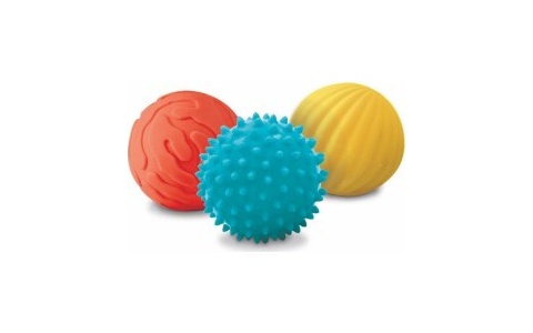 Mäkké senzorické loptičky ( 3 ks ) s rôznymi povrchmi a výstupkami určené na hru a relaxáciu s dieťatkom.